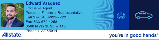 Edward Vasquez Exclusive Agent Personal Financial Representative Talk/Text: 480-999-7222 Fax: 833-679-4258 3508 N 7th St. Suite 115 Phoenix, AZ 85014